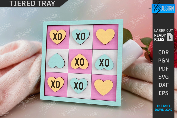 Valentine's Day Tiered Tray Laser Cut | Romantic Wood Signs | Valentine's Signs | Valentine's Decorations | Festive Tiered Tray | Seasonal Décor | Valentine's Mini Elements | Love SVG | Symbols of St. Valentine's Day | Tic Tac Toe | CNC File