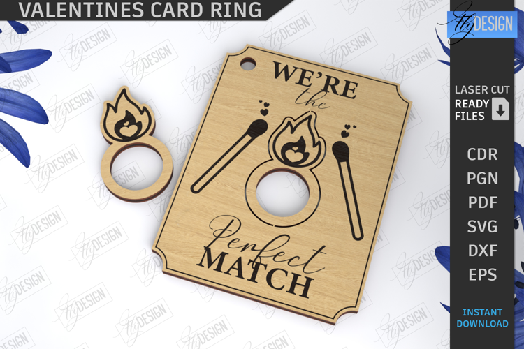 Valentine's Ring Card Laser Cut | Valentine's Day | Valentine’s Card Ring SVG | Punch-Out Ring Card | Laser Cut File | Glowforge | Valentine Laser | We're the Perfect Match | CNC File