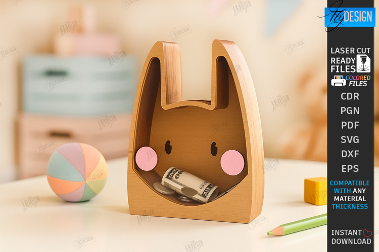 Personalized Piggy Bank Laser Cut | Animals Design | Money Box | Kids Design | 3D Silhouette | Shape of Animals | Wooden Box | Cute SVG | Bunny | CNC File