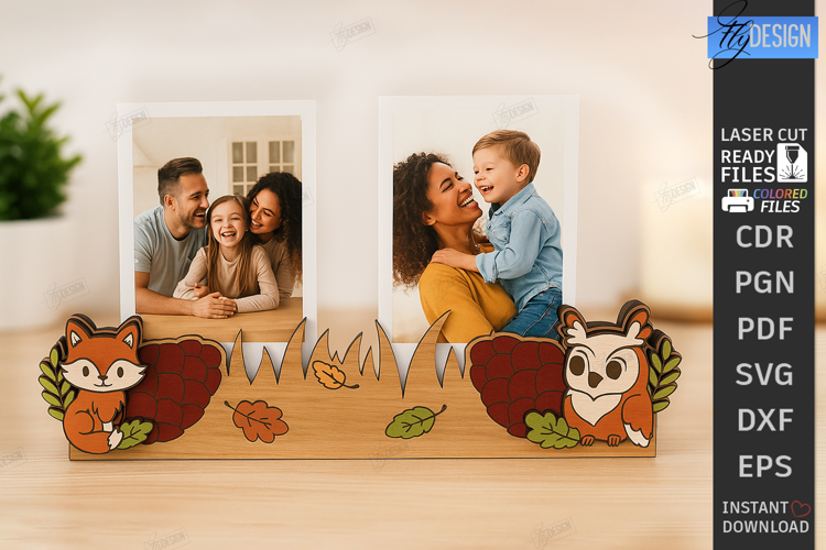 Magnet Photo Holder Laser Cut | Desk Photo Holder | Photo Stand | 3D Laser | Home Decorations | Family Design | Gift Idea | Cute Design | Kids Laser | Forest SVG| CNC File