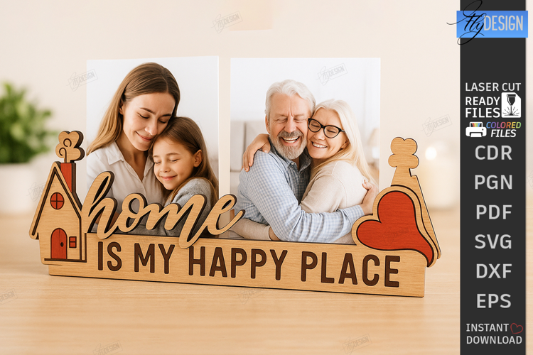 Magnet Photo Holder Laser Cut | Desk Photo Holder | Photo Stand | 3D Laser | Home Decorations | Family Design | Gift Idea | Cute Design | Kids Laser | Home is My Happy Place SVG| CNC File
