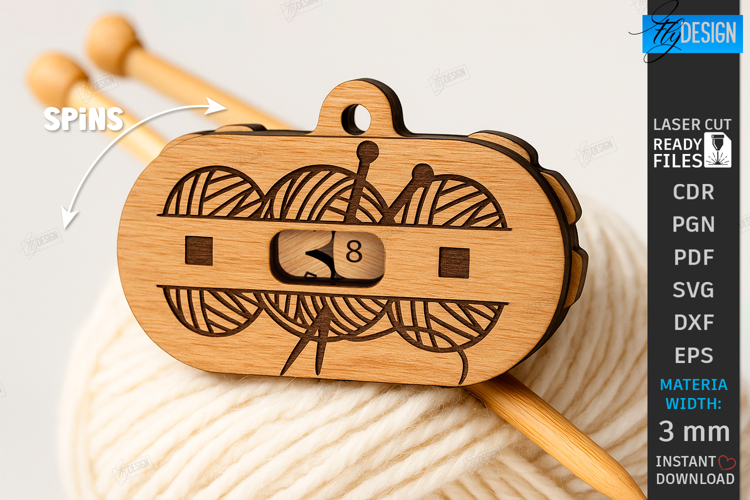Engraved Floral Design Craft Tool Knitting Gift Xtool Functional Decor Knitting Row Counter Laser Cut Knitting Accessory Wooden Knitting Tool Hobby Svf