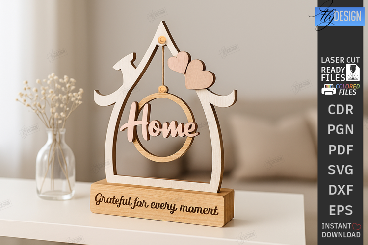 Love Home Décor Laser Cut | Table Decoration | Modern Rustic | Valentine’s Day Design | House Shaped | Decorative Plaque | Inspirational Words | CNC File