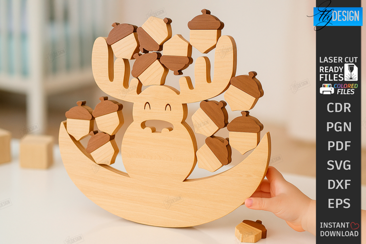 Balance Game Laser Cut | Balancing Stacking Toy | Counter Balance | Board Game | Game with Elements | Nature Themes | Deer | CNC File