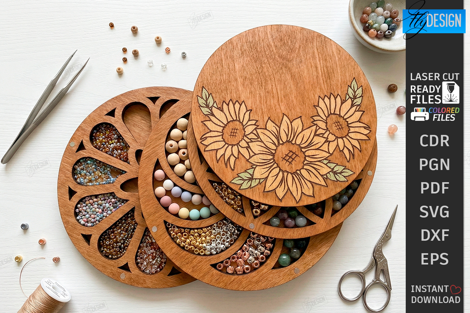 Bead Organizer Box Laser Cut | Bead Storage Box | Sunflowers example image 1
