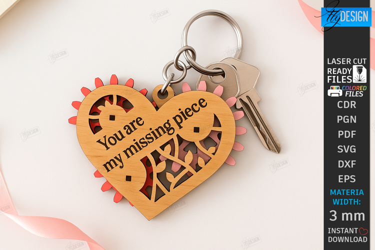 Mechanical Heart Keychain Laser Cut | Steampunk Love Keychain | Moving Gear Heart | Kinetic Heart Keyring Laser Ready | Unique Valentine’s Gift for Couples | Valentine’s Day SVG | Laser Engraving | CNC File