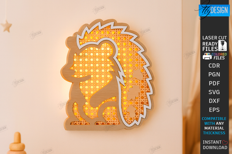 Rattan Nursery Luminous Wall Décor Laser Cut | Kids Lamp | Templates for Wall Decoration | Wall Lamp | Children's Room Decor | Lighting | Wooden Qall Mounted | Led Lights Decor for Nursery Rooms | Children Bedside Lamp | Baby Shower Gift | Nursery Night Light | Kids Laser | Hedgehog SVG | CNC File