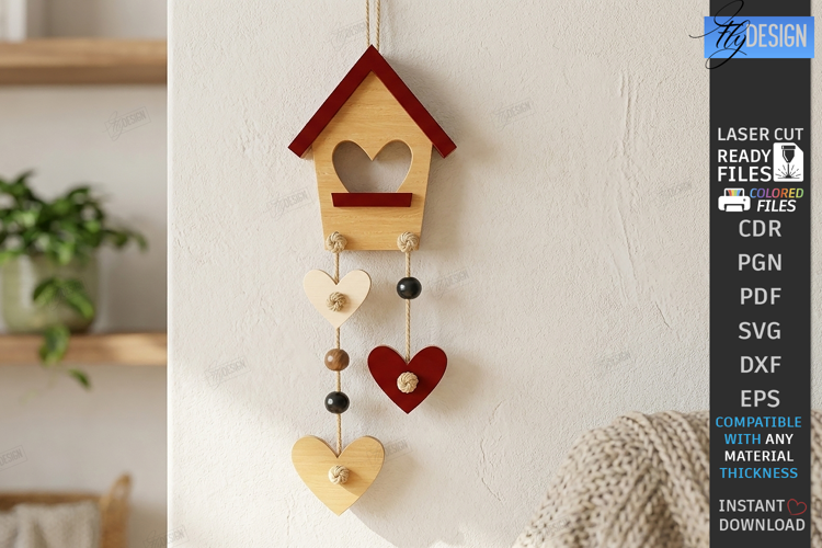 Love Wall Decor Ornament Laser Cut | Romantic Valentine Hanging Sign SVG | Cupid and Hearts SVG | Wooden Wall Art | Hanging Patterns | Rustic Design | Plaid Heart Ornaments SVG | Valentines Day Decor Laser Ready | 3mm Plywood Vertical Love Sign | CNC File