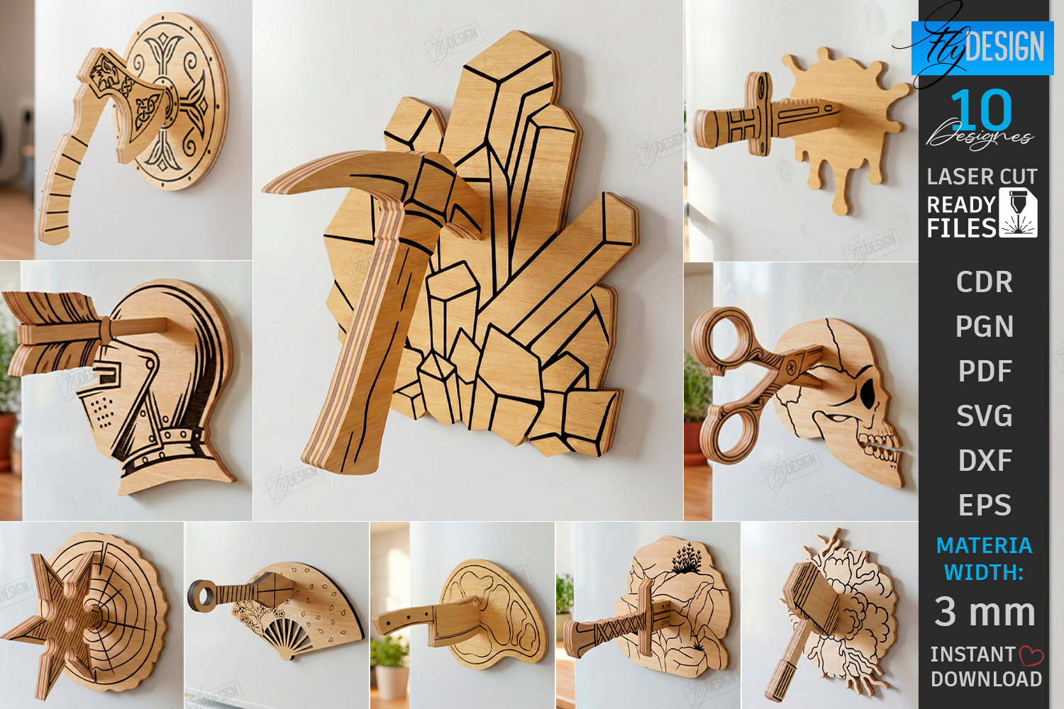 Magnet Kitchen Note Holders Laser Cut Bundle | Weapon and Artifact Magnet | 3D Laser Cut Kitchen Note Magnets SVG | Viking Axe and Knight Helmet | Samurai Katana and Ninja Shuriken Fridge Magnets DXF | Pickaxe and Fantasy Magnet Files | Skull and Scissors Magnet Holder SVG | 3mm Plywood Laser Ready Digital Download | Medieval and Fantasy Weapon Magnet | CNC Files