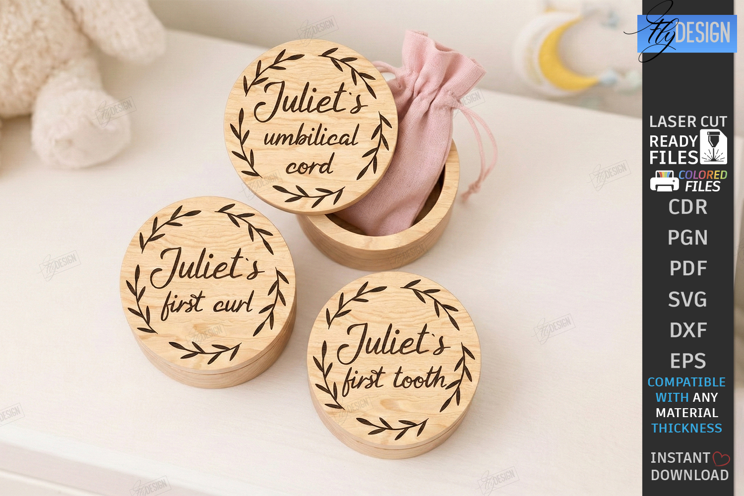 Newborn Svg Laser Cut Files First Haircut Baby Keepsake Xtool Memory Box Keepsake Memory Box First Tooth Box First Curl Box Umbilical Cord Box