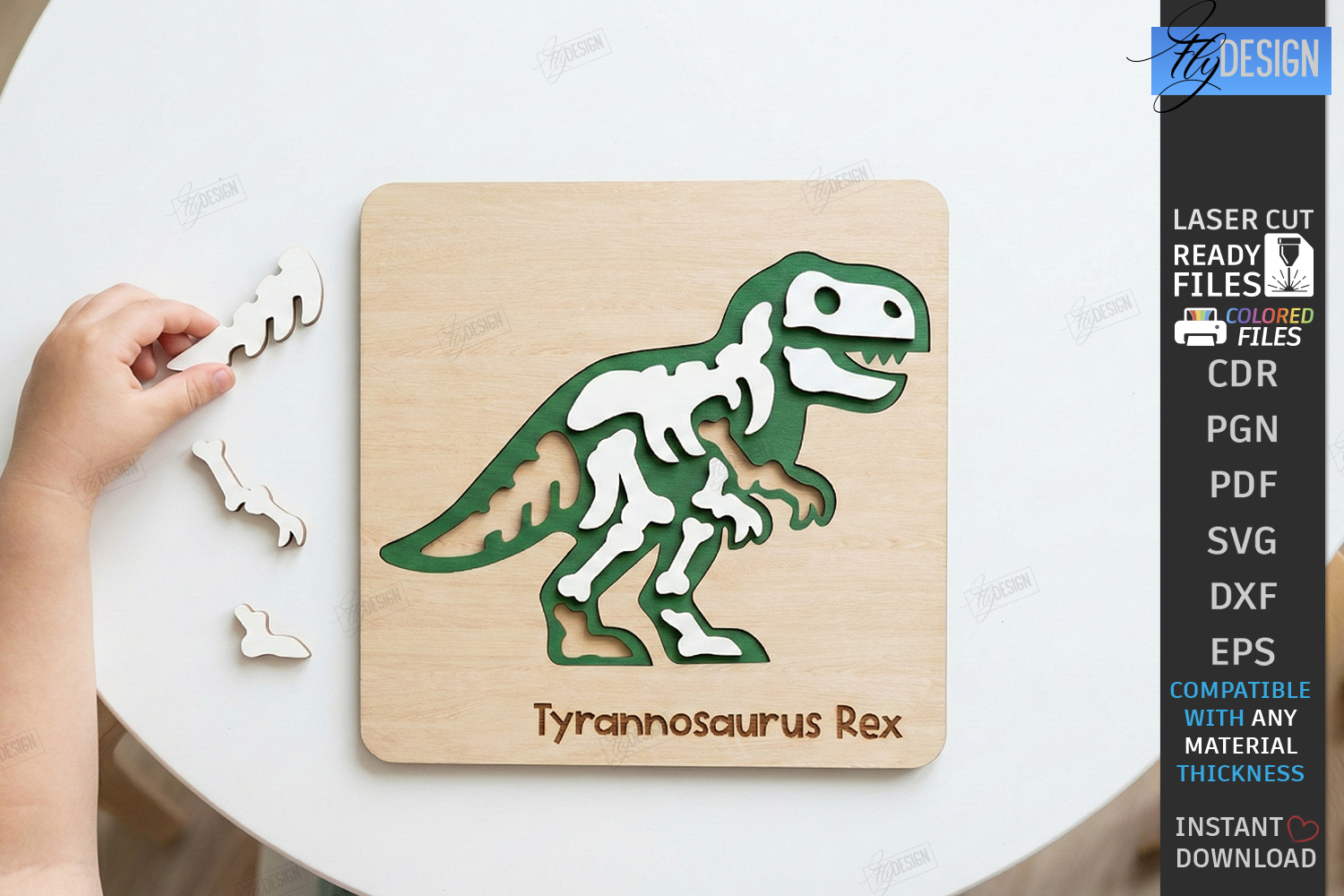 Similar Design Products to Dinosaur Skeleton Puzzle Laser Cut | Montessori Toy SVG |CNC