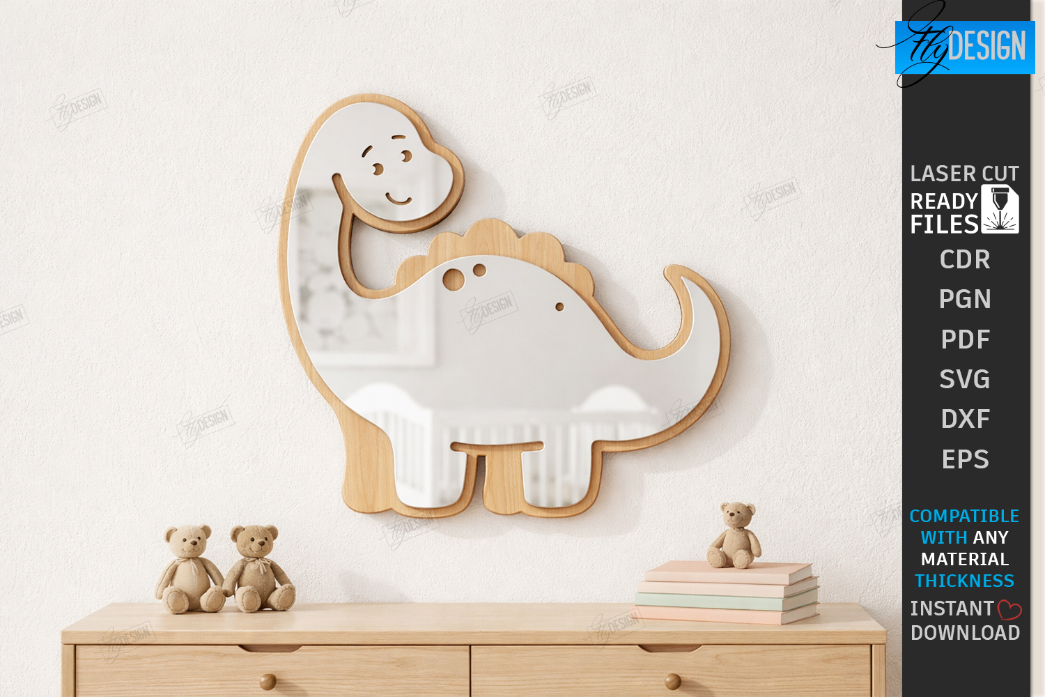 Kids Room Wall Mirror Laser Cut | Wall Decor | Nursery Acrylic Mirror SVG | Mirror Template for a Children's Room | Kids Laser | Children’s Mirror Frame SVG | Nursery Decor Laser File | Mirror Pattern Laser Ready | Nursery Wall Art SVG DXF | Interactive Kids Room Decor for Any Material Thickness | Home Decor | Dinosaur SVG | CNC File