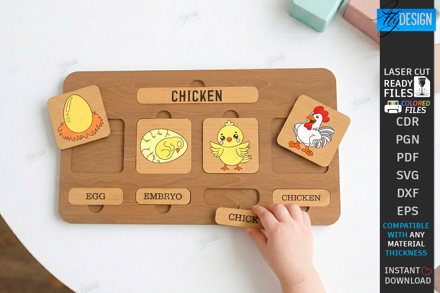 Life Cycle Puzzle Laser Cut | Educational Montessori Toy Designs | Science Classroom Learning Tool DXF | Kids DIY Wooden Toy Template | Nature Studies Activity Laser File | Glowforge Ready Cut File | Kids Laser | Educational Toys SVG | Chicken | CNC File
