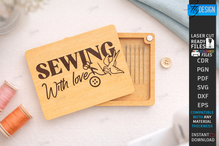 Wooden Needle Holder Laser Cut | Engraved Sewing Organizer Designs | Sewing SVG | Magnet Needle Case DXF | Craft Room Storage and Decor Template | Laser Ready Embroidery Tool Files | Glowforge Digital Download | Crafting | CNC File