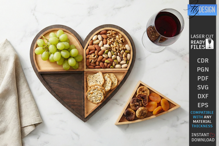 Charcuterie Board Svg Snack Serving Tray Serving Tray Laser Cut Xtool Project Appetizer Platter Dxf Cheese Board Designs Heart Shaped Tray Hexagon Tray Svg Round Serving Board Puzzle Tray Design