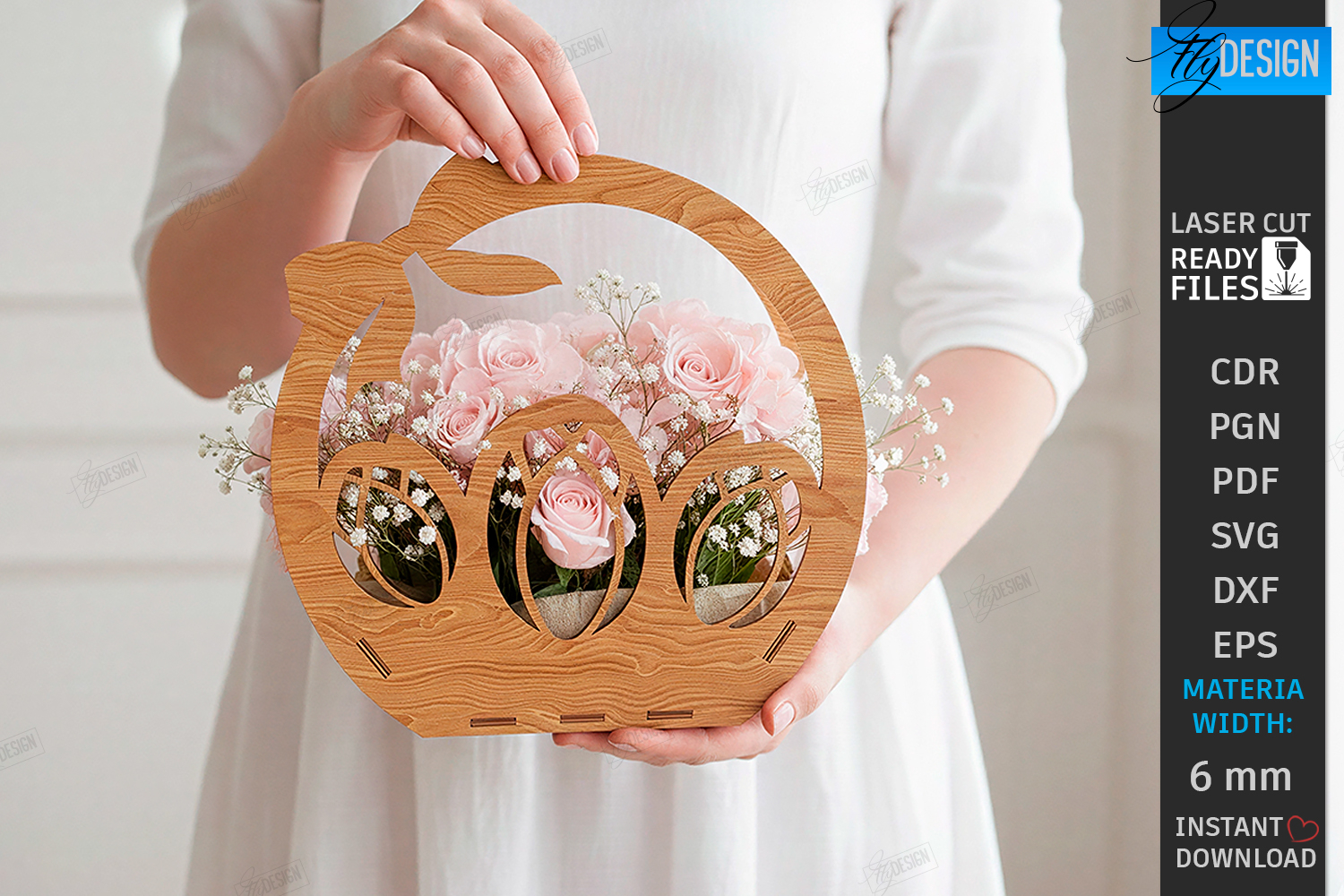 Similar Design Products to Flowers Basket Laser Cut | Bouquet Holder | Gift Basket SVG