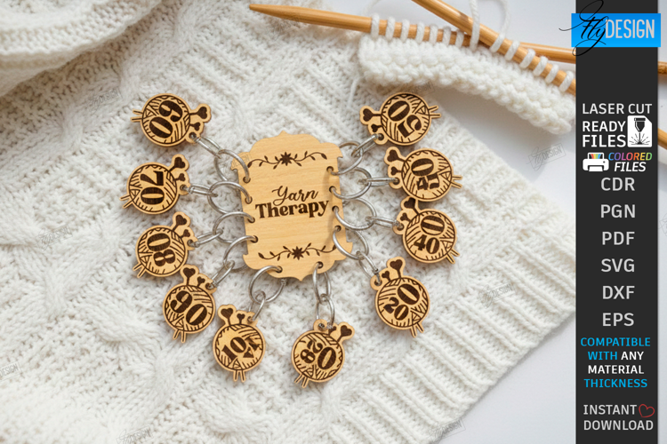 Wooden Knitting Stitch Markers Laser Cut | Crochet Progress Keeper Designs | Yarn Therapy | Stitching SVG | Stitch Markers DXF | Fiber Art Notions Template | Glowforge Ready Cut Files | Wood Craft | CNC File
