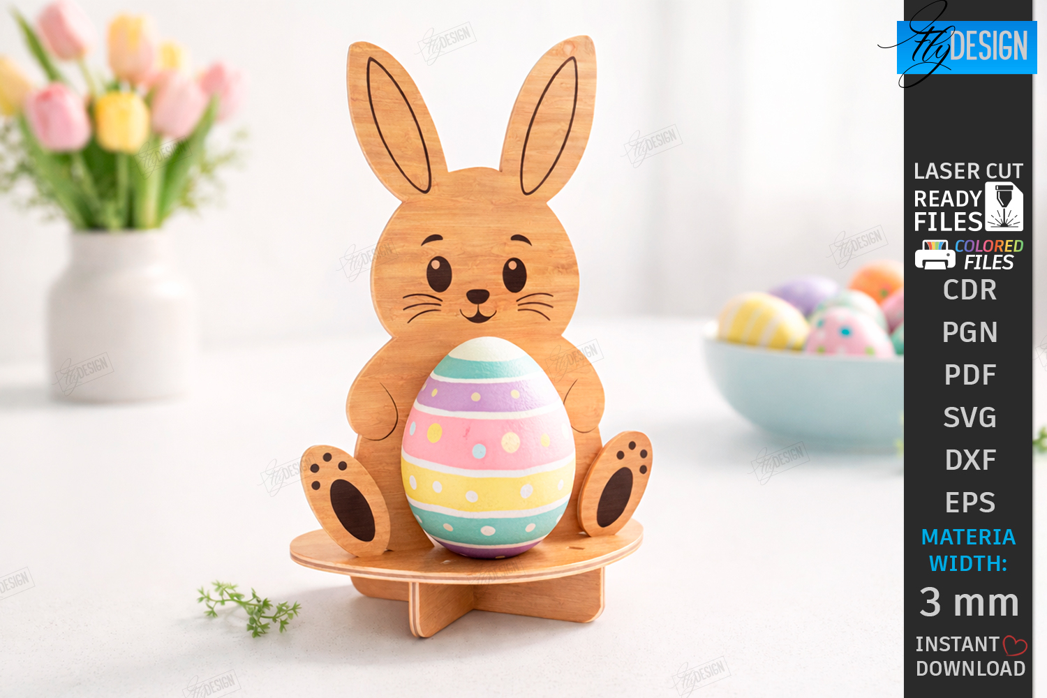 Easter Egg Holder Laser Cut | Bunny Egg Stand | Easter Rabbit Table Decor | Kinder Surprise Holder Laser Ready | Easter Ornament | Wooden Easter Bunny Template | Glowforge Egg Stand Files | Kids Easter Gift Idea | 3mm Material Laser Project | Easter Decoration CNC Vector
