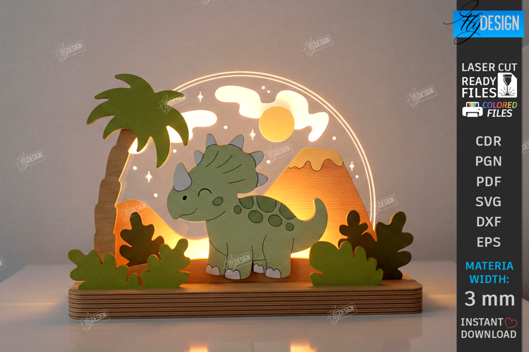 Kids Night Light Stand Laser Cut | 3D Layered Childrens Lamp SVG | Laser Cut Nursery Decor | Nightlight | Kids Bedroom Table Lamp Glowforge Files | Cartoon Animal Light Box | Night Light Designs 3mm Plywood | Dinosaur SVG | CNC File