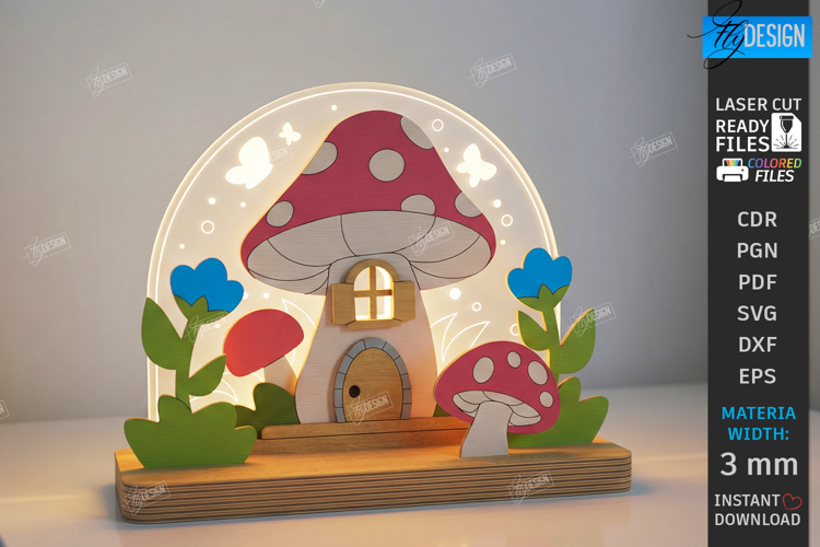 Kids Night Light Stand Laser Cut | 3D Layered Childrens Lamp SVG | Laser Cut Nursery Decor | Nightlight | Kids Bedroom Table Lamp Glowforge Files | Cartoon Animal Light Box | Night Light Designs 3mm Plywood | Mushroom SVG | CNC File