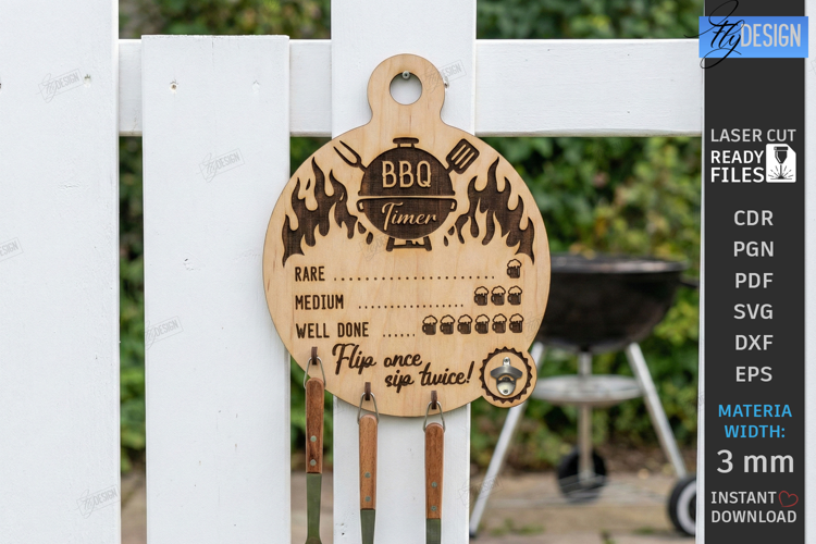 Wall BBQ Timer Signs with Utensil Holders Laser Cut | CNC example image 1