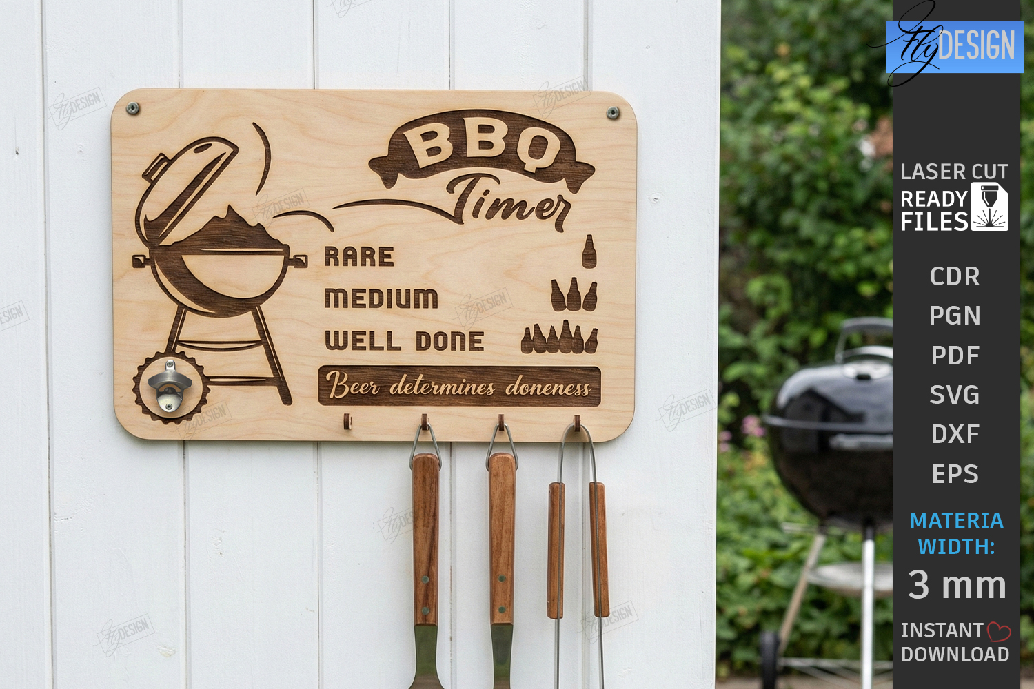 Funny BBQ Timer Sign Laser Cut | Laser Cut Grilling Decor SVG | Wall Signs | Beer Determined Doneness Gauge | Mens Kitchen Wall Art | BBQ Utensil Holder with Bottle Opener | Man Cave Gift Ideas | BBQ Grilling Signs | Wall Decor | Wood BBQ Party Decor 3mm | Outdoor Decor | Father's Day Gift | CNC Files