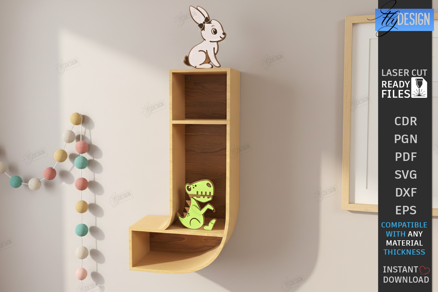 Wooden Letter Bookshelf Laser Cut | Alphabet Wall Shelf Laser Cut File | Personalized Nursery Library Decor DXF | 3D Initial Bookcase for Kids Room | Large Alphabet Letter Shelving Patterns | CNC Woodworking Furniture Plans | Kids Education Room Wall Art | Home Decor | CNC File