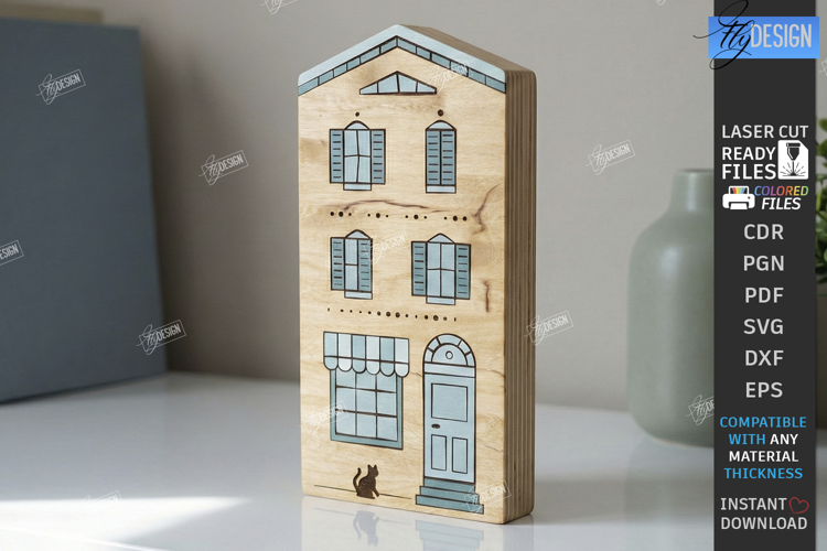 Miniature Village Block Toy Laser Cut | Layered Town House