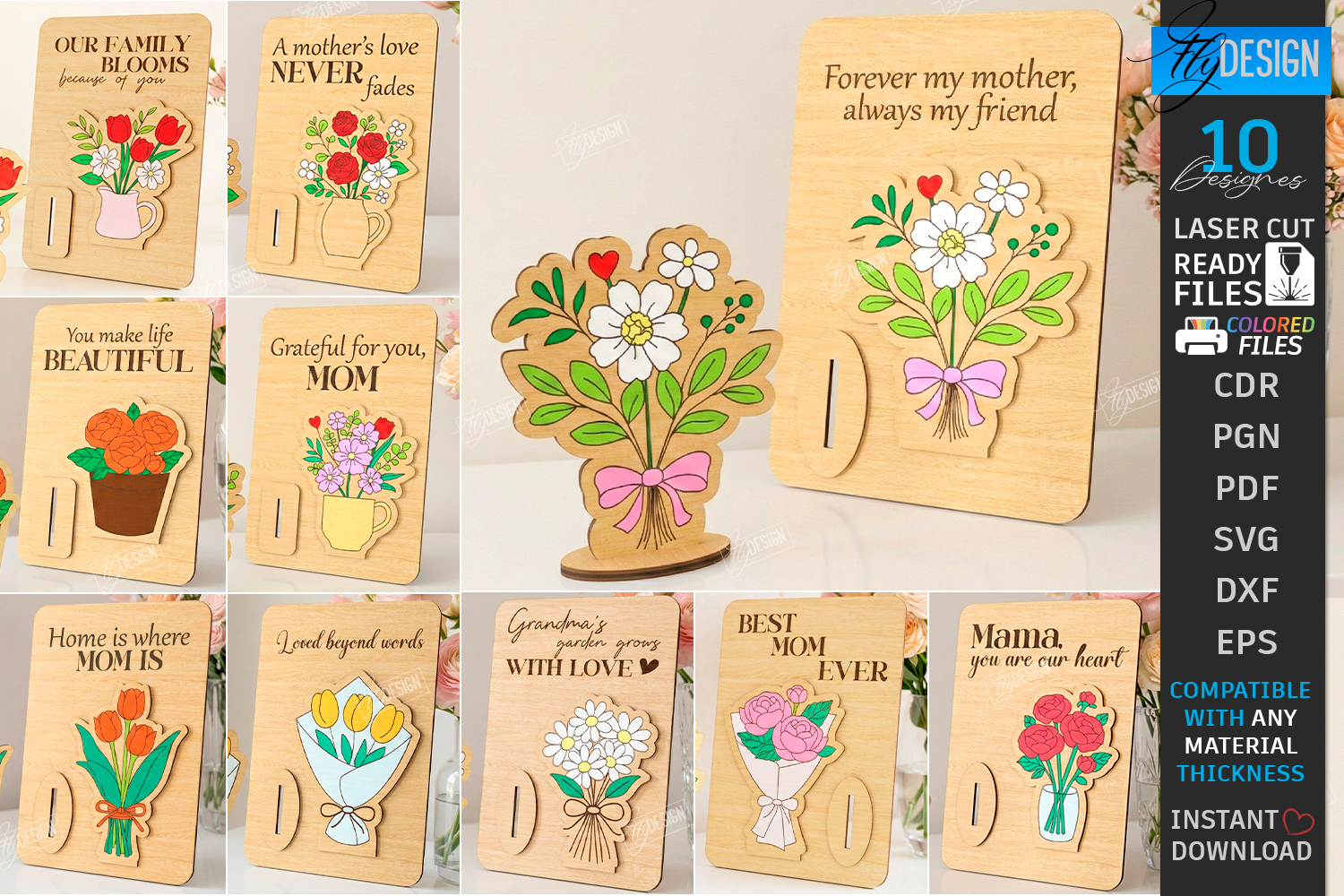 Mother's Day Wooden Card Laser Cut Bundle | Layered Flower Greeting Card | Mom Birthday Standing Sign SVG | Forever My Mother Always My Friend SVG | Wooden Bouquet Gift Laser Ready | Grandma's Garden Laser Cut File | 3D Layered Floral Card SVG | Best Mom Ever Wood Sign | Glowforge Mother's Day | Floral Greeting Card Laser Project
