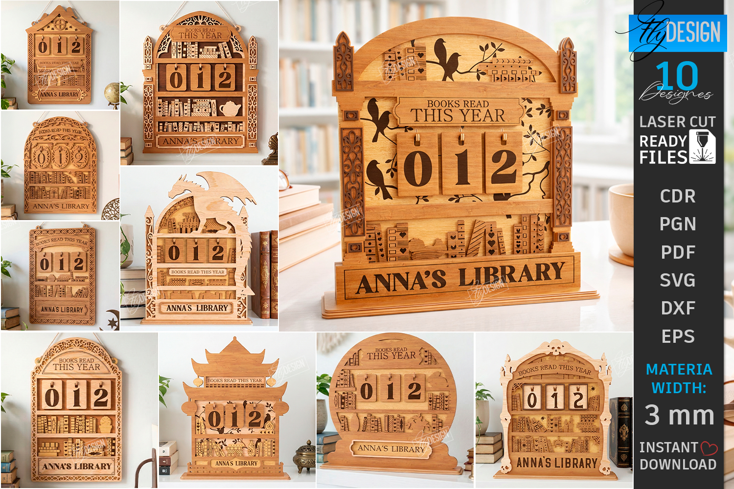 Retro Book Trackers Laser Cut Bundle | Reading Goal Jar | Bookworm Library Decor SVG | Books Read Tracker Laser Ready | Library Card Style Book Jar | Reading Challenge Wood Decor | Glowforge Book Lover Files | 3D Layered Book Tracker SVG | Personalized Library Sign | Gifts for Book Lovers Laser Project | Home Decor | NC Files