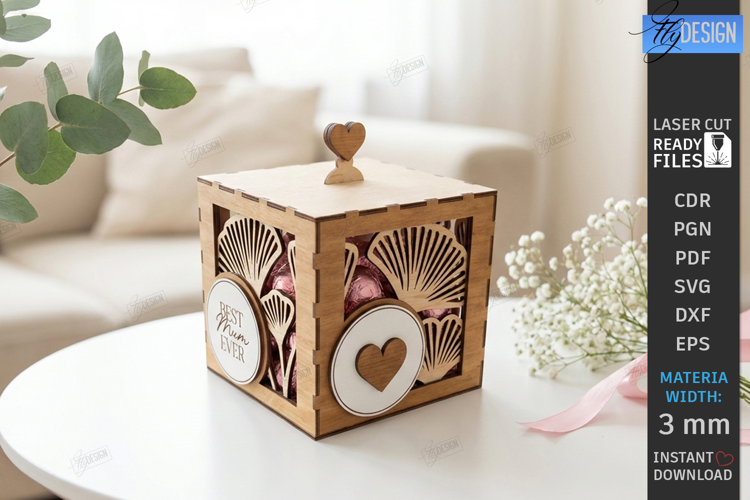 Mother's Day Gift Box Laser Cut | Decorative Jewelry Box Designs | I Love You Mom Wood Box SVG | Best Mom Ever Keepsake Case | Floral Trinket Box Template | 3D Laser Cut Gift Wrap | Glowforge Ready Plywood Box | Mother's Day Candy Box SVG | Intricate Lace Pattern Box | 3mm Wood Box Design | Anniversary & Birthday Gift for Her | Decorative Storage Box SVG | Digital Download | CNC File