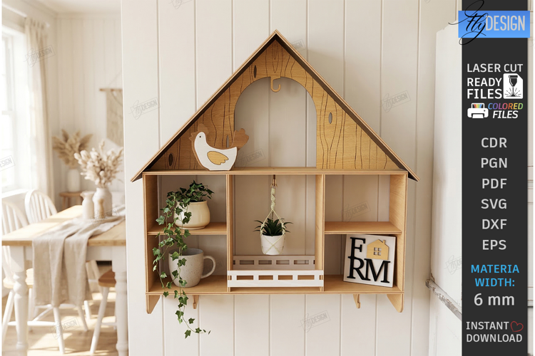 Similar Design Products to Farmhouse House Shelf Laser Cut | Rustic SVG | Wall Shelves