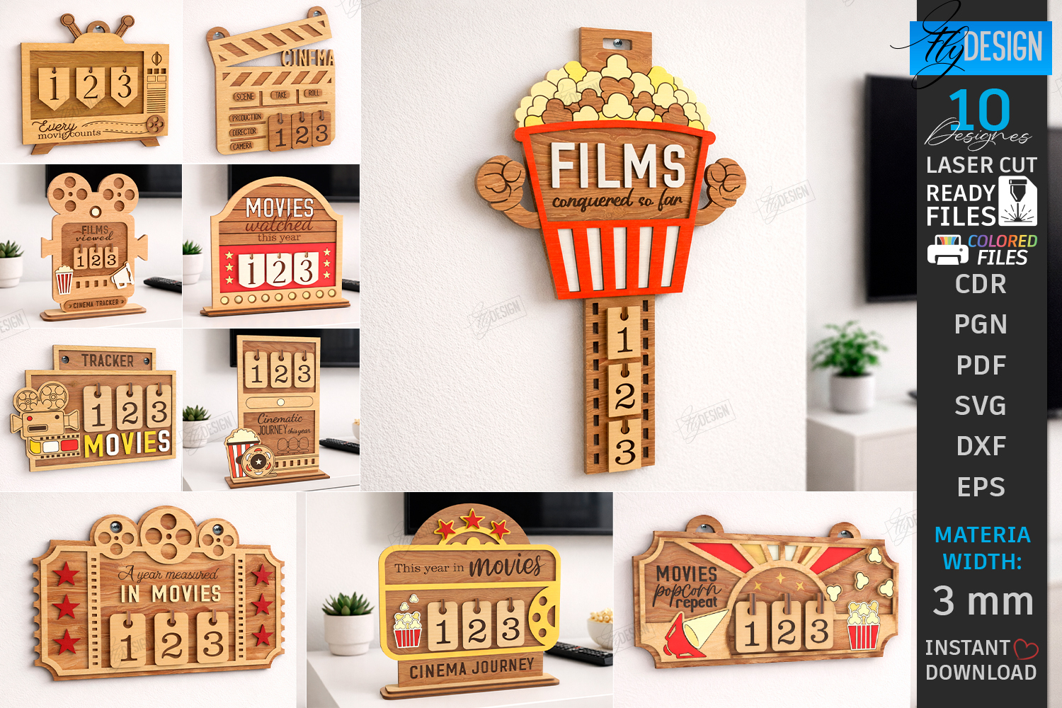 Movie Tracker Laser Cut Bundle | Cinema Movies Watched Counter SVG | Film Lover Achievement Sign Glowforge Files | Wall Board | Popcorn and Clapperboard Tracker DXF | Home Theater Decor Progress Board | 3D Wood Cinema Journey Vector | Movie Buff Milestones Designs | Home Decor | Wall Signs | CNC Files
