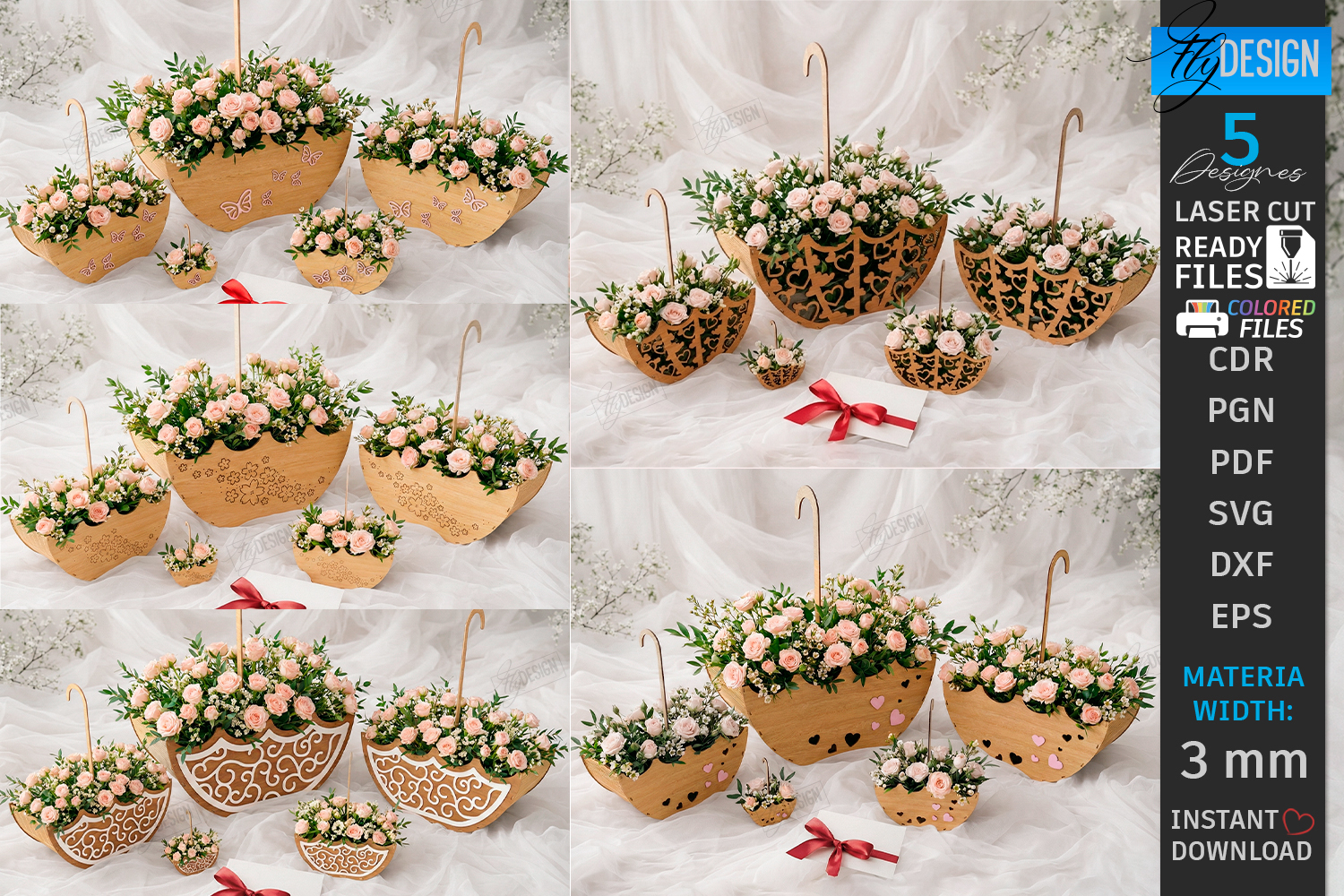 Umbrella Flower Boxes Laser Cut Bundle | Bridal Shower Gift Boxes | Wedding Centerpiece Laser Cut File | Mother's Day Floral Basket | 3D Wood Flower Holder | Spring Table Decor | Decorative Gift Basket | Anniversary Flower Box | Laser Ready Lantern | Floral Arrangement Stand | Baby Shower Party Favors | Wooden Umbrella Planter | Event Table Centerpiece | CNC File