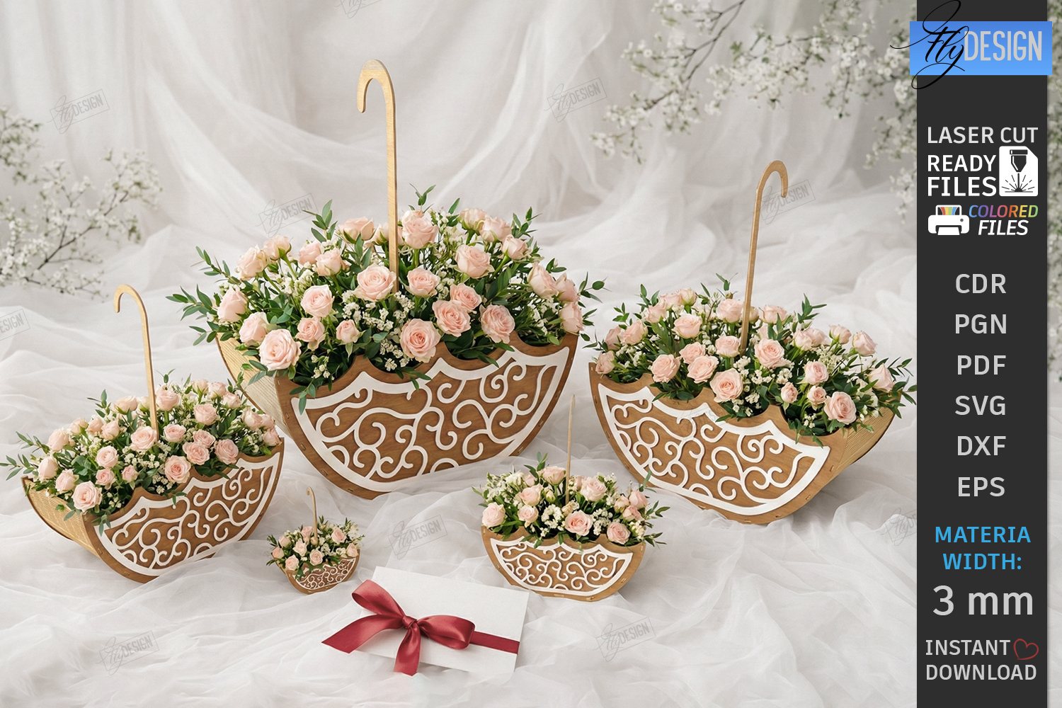 Umbrella Flower Boxes Laser Cut | Bridal Shower Gift Boxes | Wedding Centerpiece Laser Cut File | Mother's Day Floral Basket | 3D Wood Flower Holder | Spring Table Decor | Decorative Gift Basket | Anniversary Flower Box | Laser Ready Lantern | Floral Arrangement Stand | Baby Shower Party Favors | Wooden Umbrella Planter | Event Table Centerpiece | CNC File