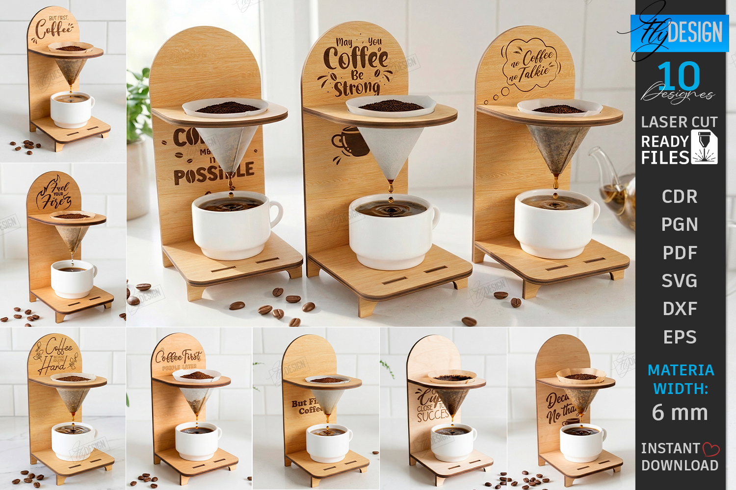 Wooden Coffee Drip Stand Laser Cut Bundle | Laser Cut Pour Over Station Glowforge Files | Barista Coffee Maker Holder CNC Plan | Kitchen Decor Accessories Template | Engraved Coffee Station Design | Manual Brew Stand Digital Download | Plywood Coffee Bar Gift | Decorative Cafe Wood Pattern