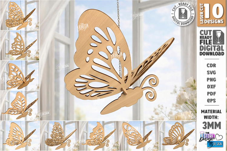 Similar Design Products to 3D Butterfly Hanging Ornaments Laser Cut Bundle | Home Decor