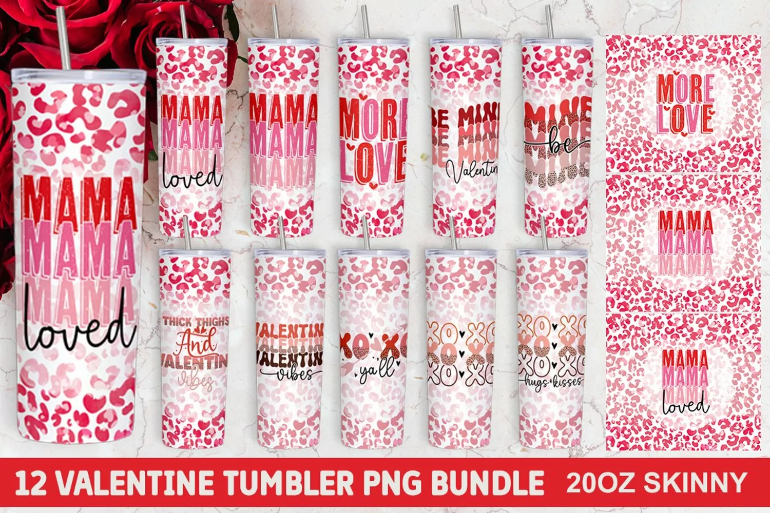 Valentine Tumbler PNG Bundle - Skinny Tumbler Sublimation