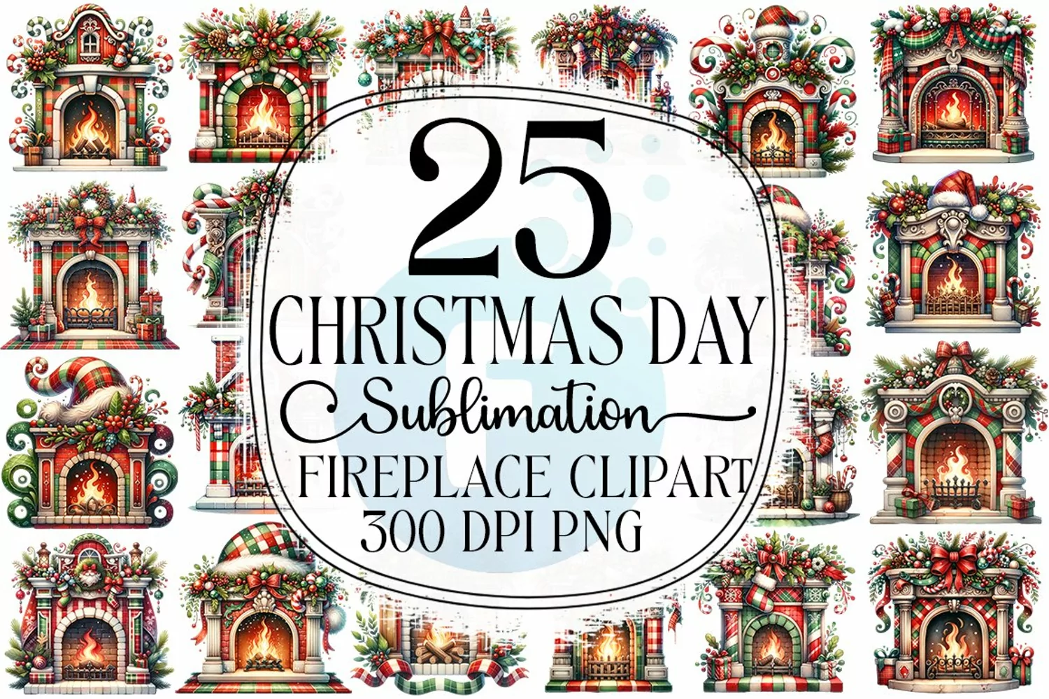 Christmas Fireplace Clipart Bundle - Christmas Sublimation