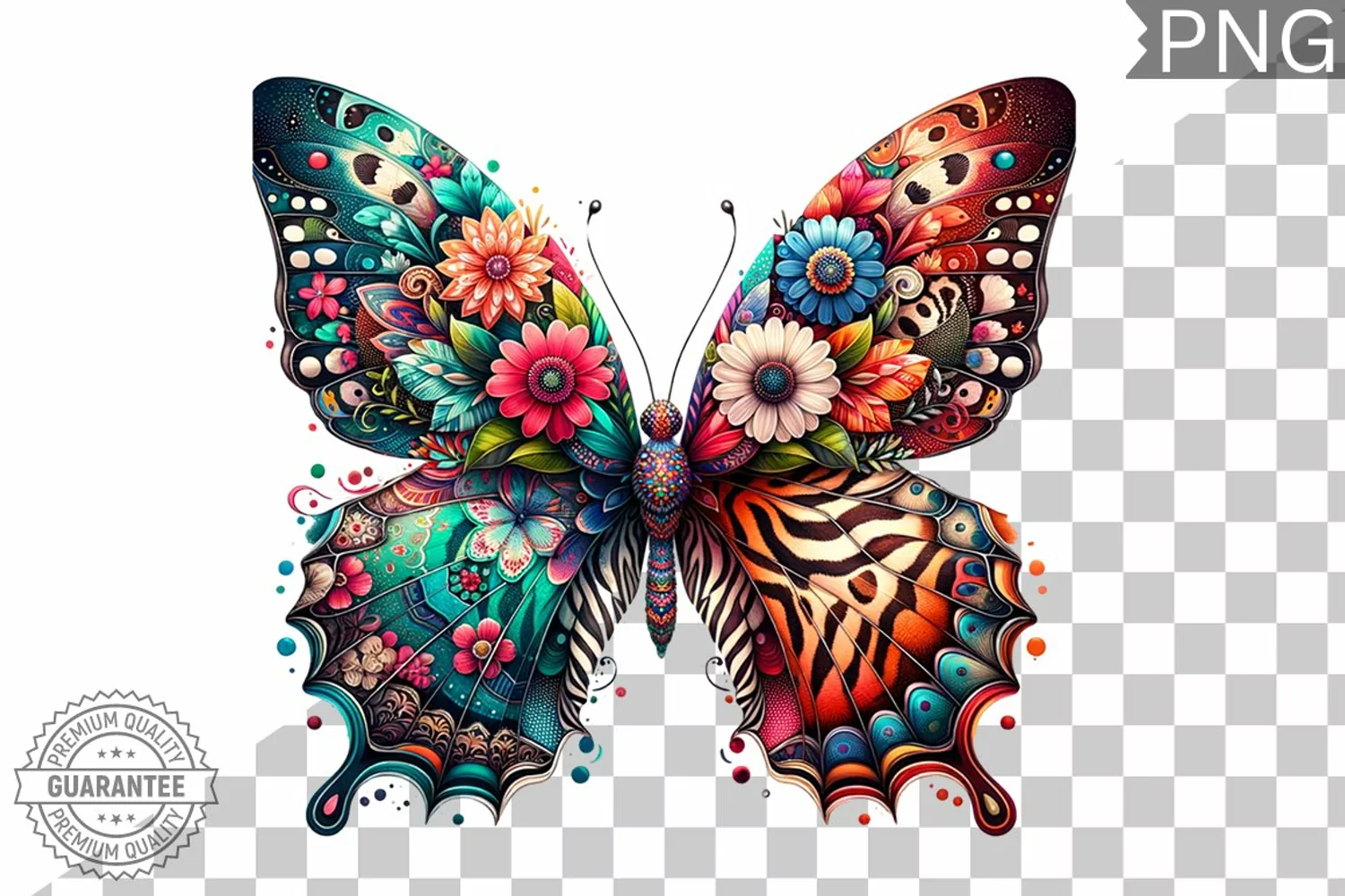 Vibrant Floral Butterfly Sublimation - Clipart PNG Design