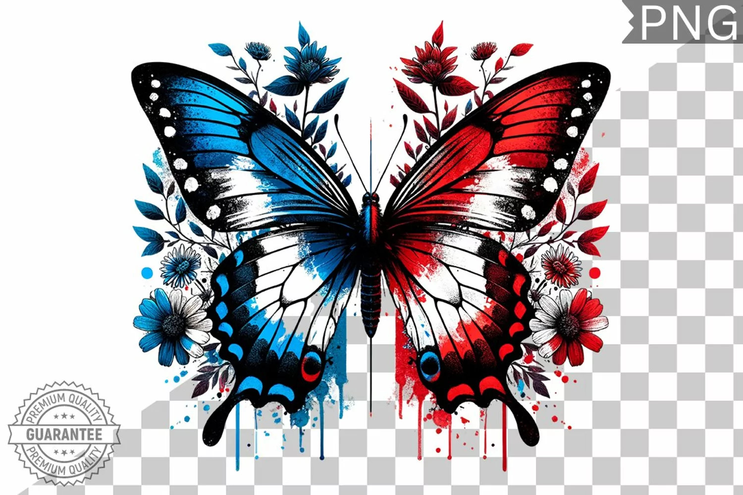 4th Of July Flora Butterfly Sublimation - 4th of July PNG