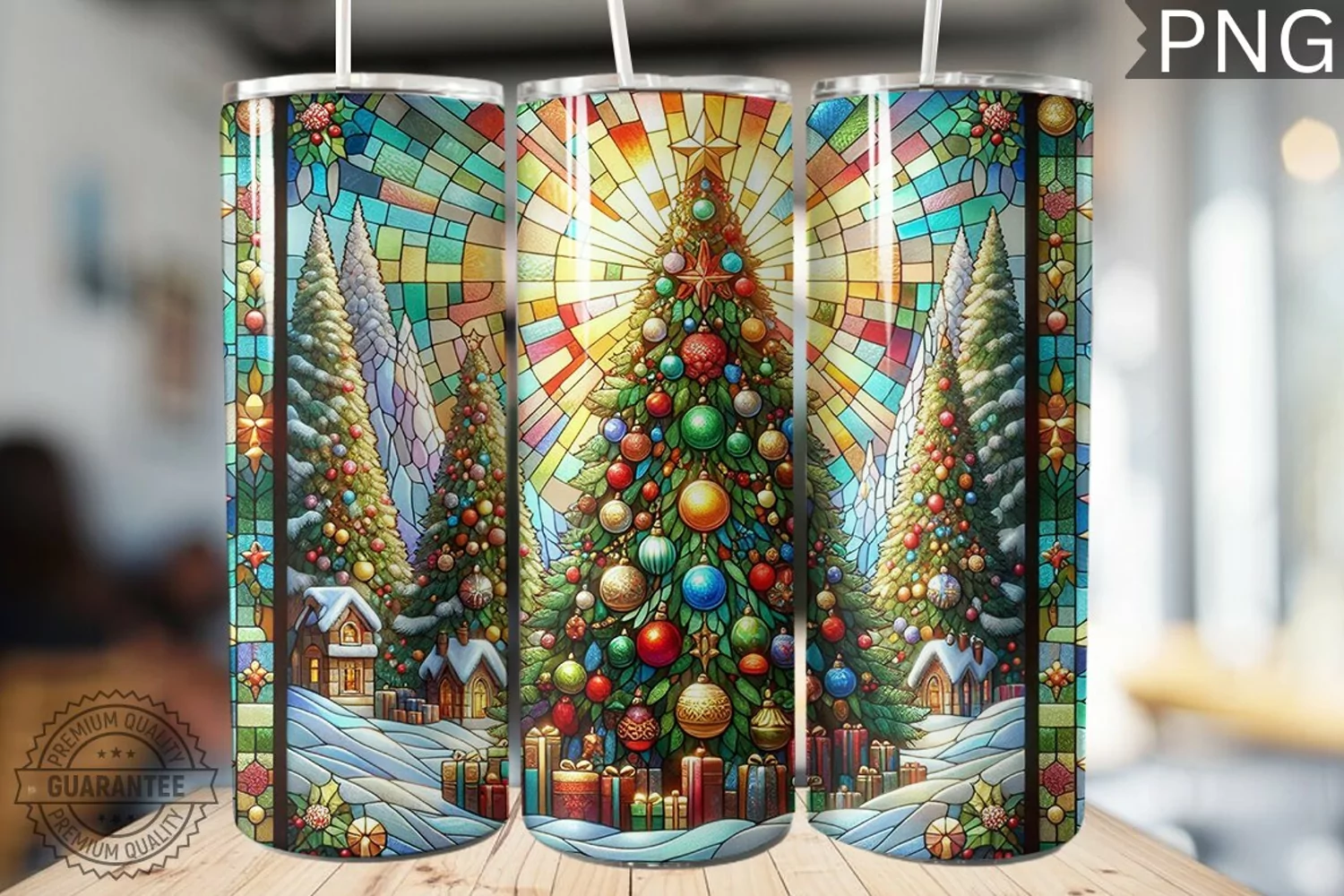 Make your holiday season special with a custom tumbler wrapped in this beautiful Christmas tree design.