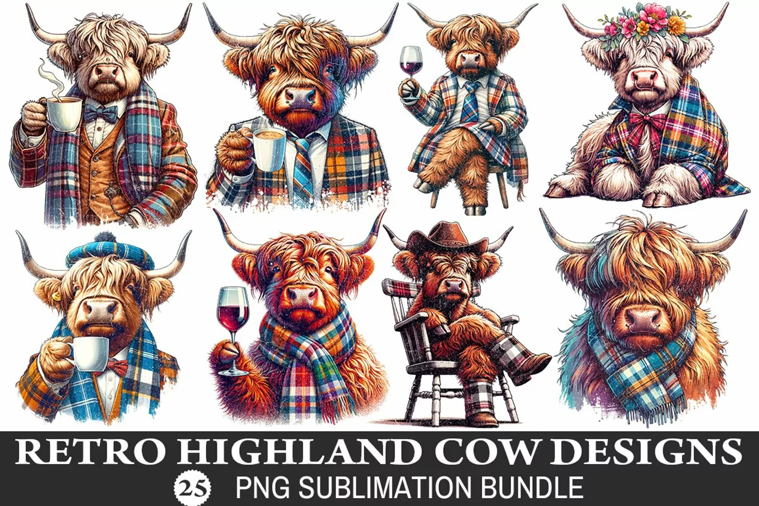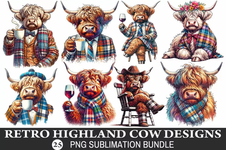 Get your hands on the Retro Highland Cow Sublimation Bundle today and bring a touch of countryside charm to your creations!