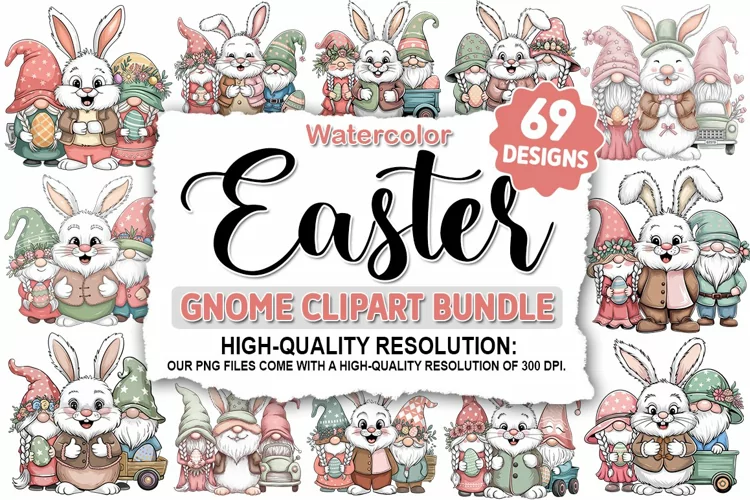 Easter Bunny Gnome Sublimation - Clipart PNG Bundle