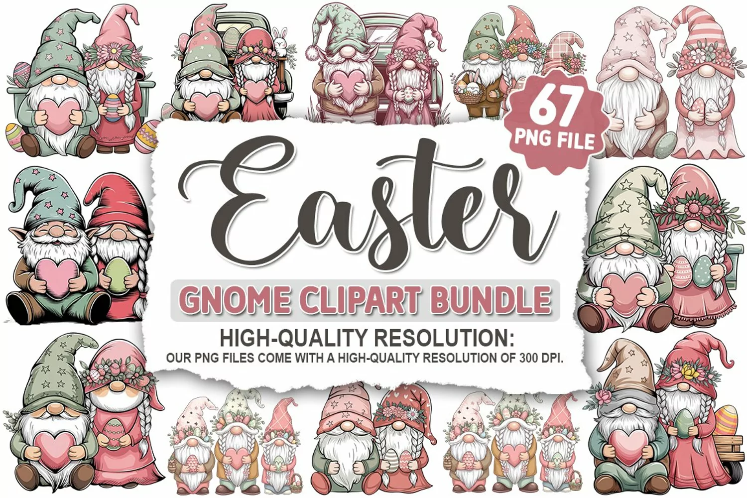 Easter Gnome Sublimation - Clipart PNG Bundle