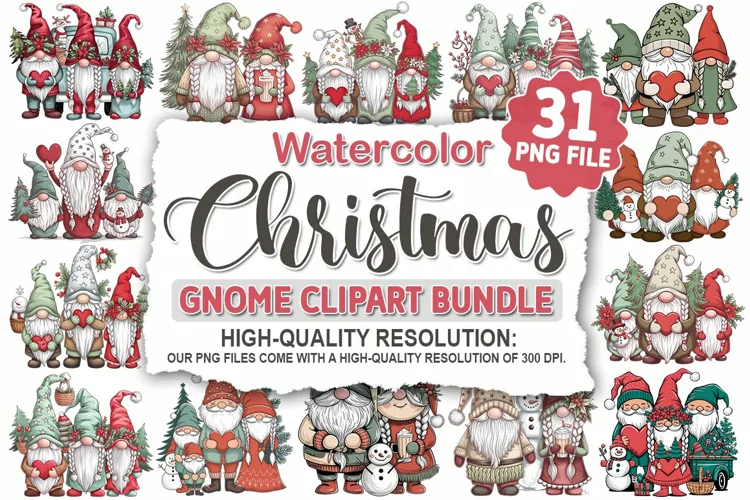 Christmas Gnome Clipart Sublimation Bundle was created by hand and then converted to a digital file.