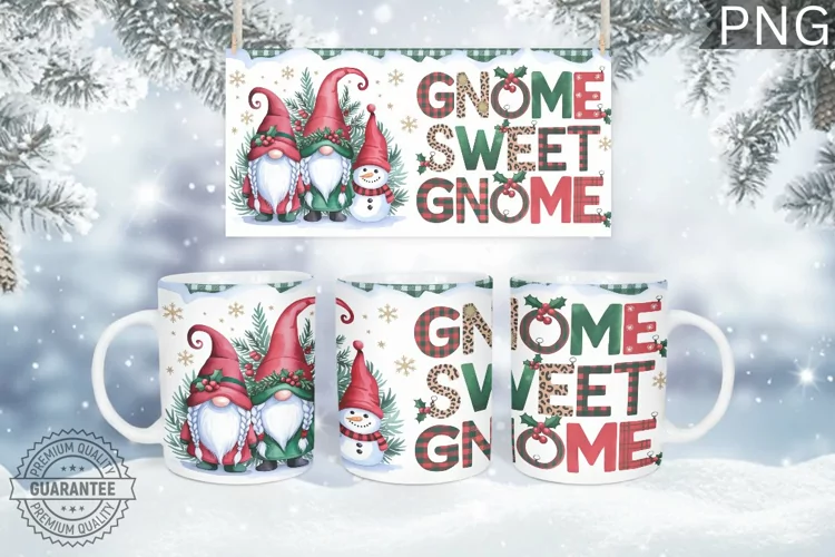 Gnome Sweet Gnome Mug Wrap - Christmas Mug Sublimation