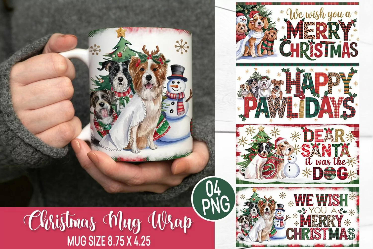 Christmas Mug Wrap Design - Christmas Dog Sublimation example image 1