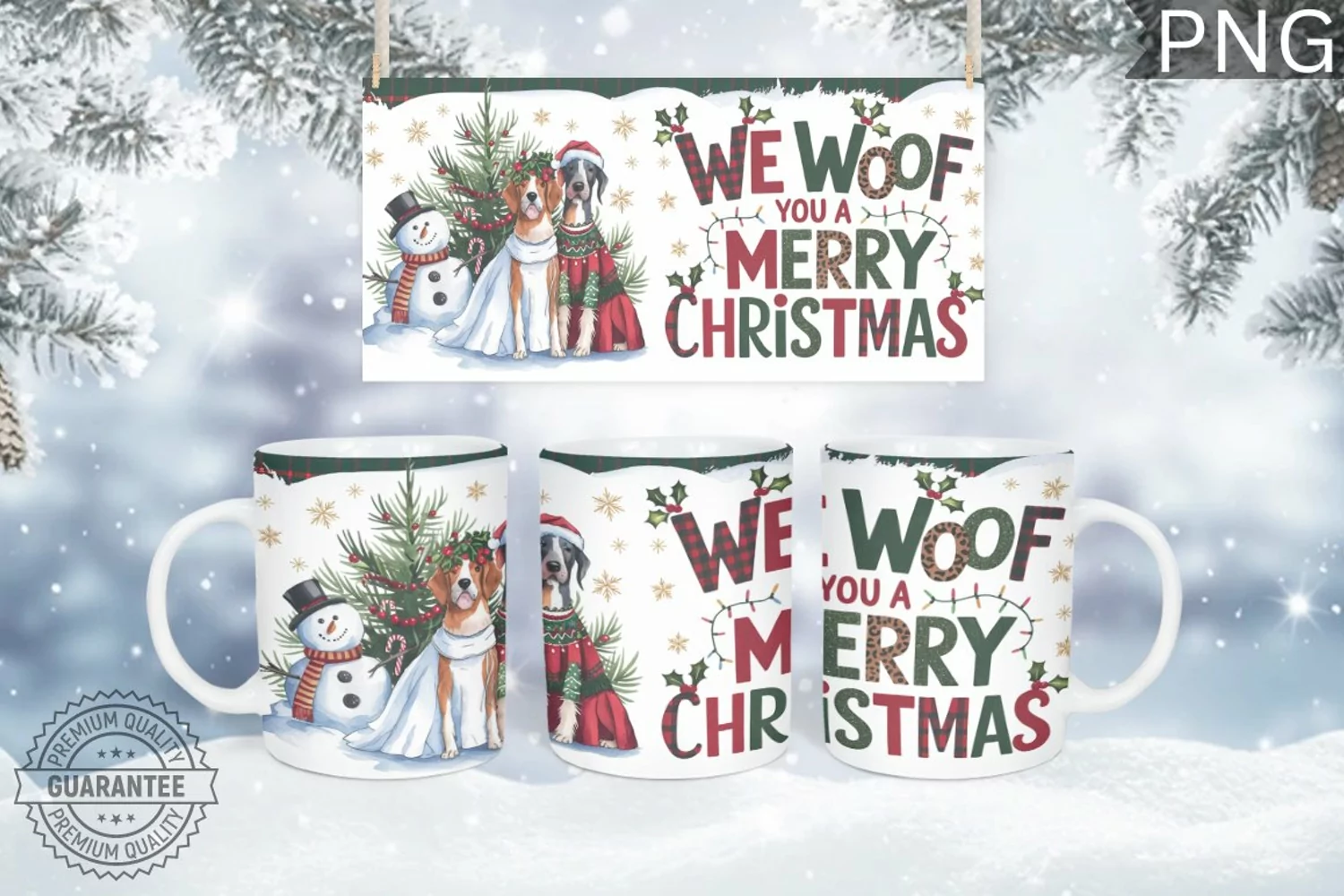 We woof you a Mug Wrap Design-Christmas Dog Sublimation
