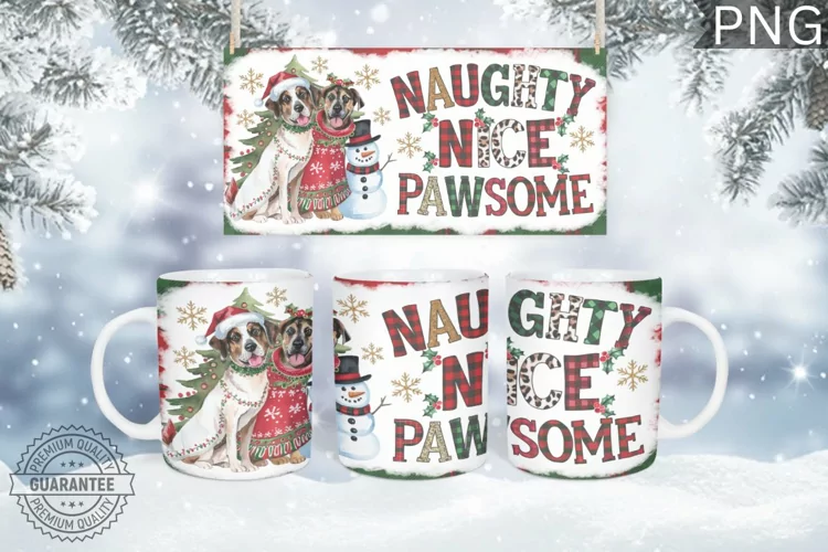 Similar Design Products to Naughty Nice Mug Wrap Design-Christmas Dog Sublimation
